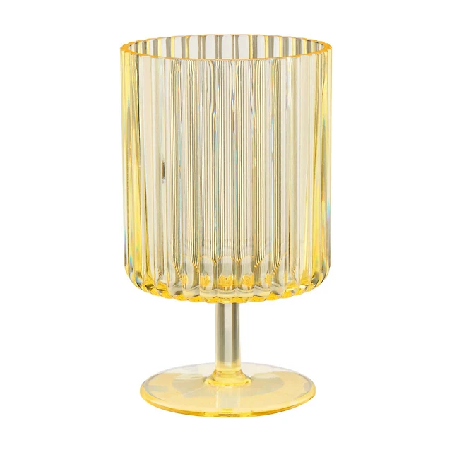 Yellow Translucent Fluted Reusable Plastic Wine Glass, 12.5 oz