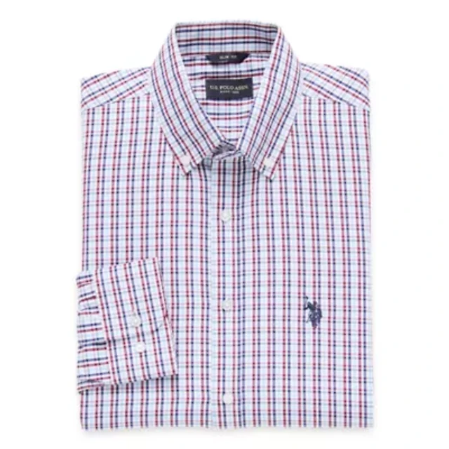 U.S. Polo Assn. Poplin Heather Mens Long Sleeve Classic Fit Embroidered Button-Down Shirt