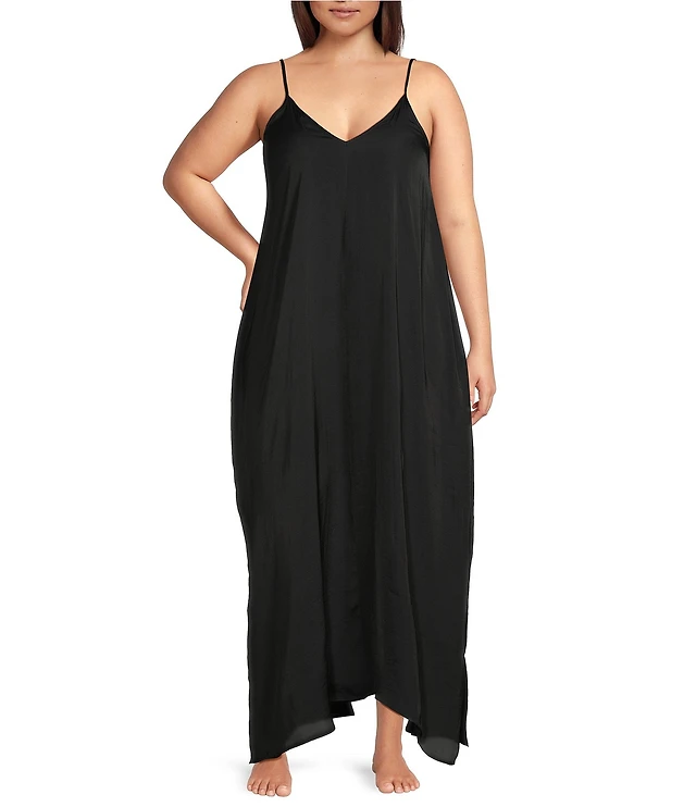 VAN WINKLE & CO. Plus Size Solid Washed Satin Sleeveless V-Neck Maxi Chemise