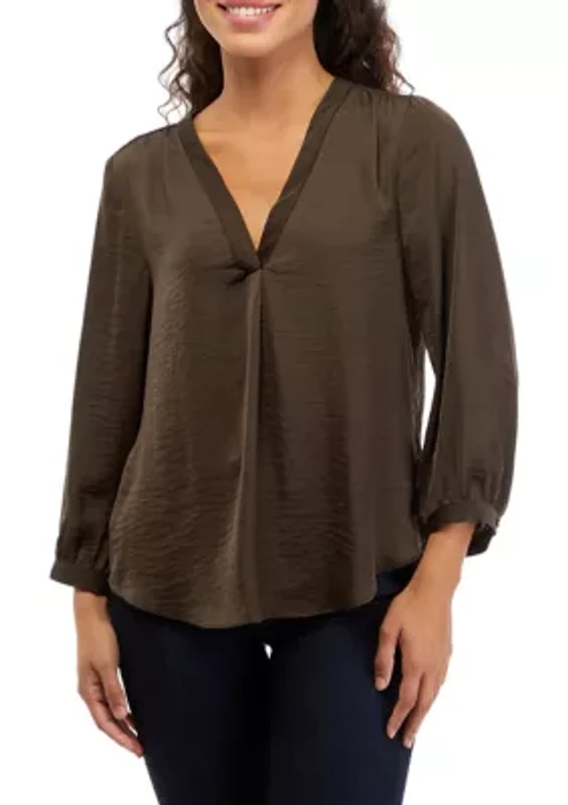Petite 3/4 Sleeve V-Neck Top