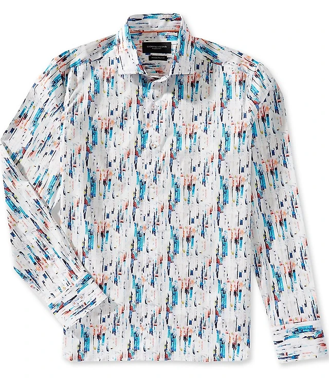 Visconti Abstract Print Stretch Long Sleeve Woven Shirt