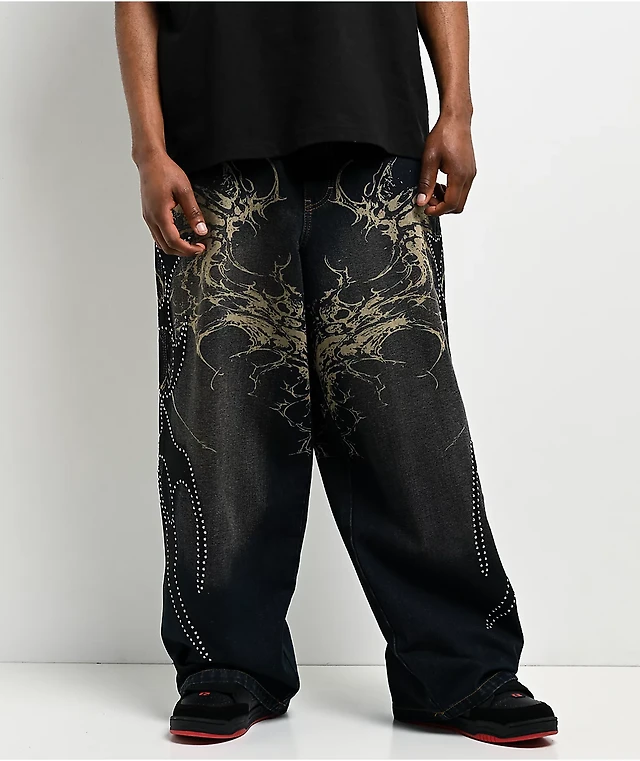 Vitriol Void Repent Dark Blue Wash Wide Leg Jeans