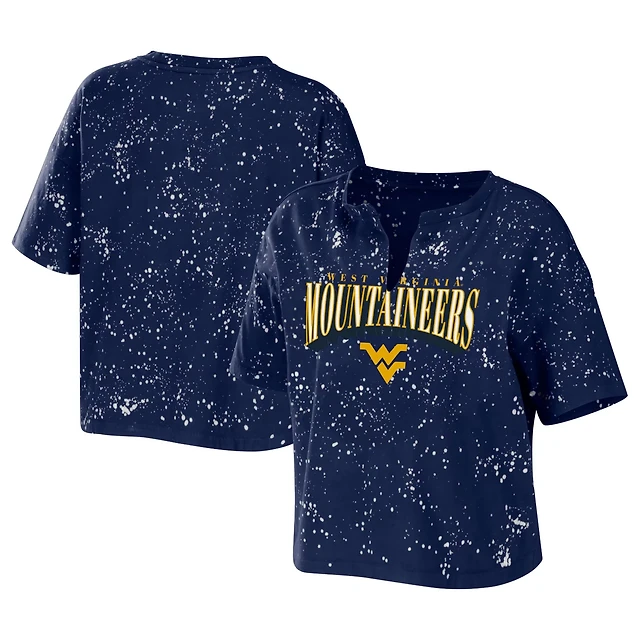 WEAR by Erin Andrews West Virginia Mountaineers Bleach Wash Splatter Cropped Notch Neck T-Shirt