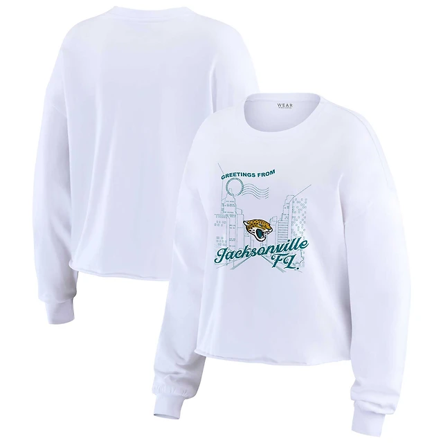 Women's WEAR by Erin Andrews White Jacksonville Jaguars Postcard Cropped Long Sleeve Top