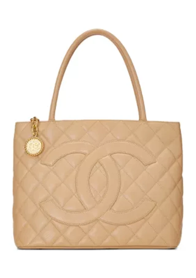 Chanel Beige Quilted Caviar 'CC' Turnlock Tote Large - FINAL SALE, NO RETURNS