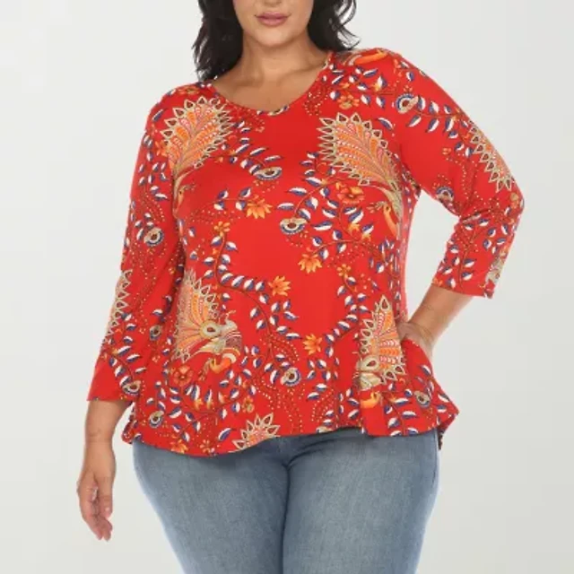 White Mark Plus Maternity Womens Scoop Neck 3/4 Sleeve Tunic Top