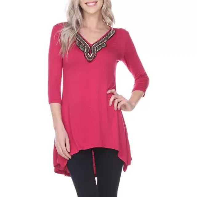 White Mark Maternity Womens Boat Neck 3/4 Sleeve Tunic Top