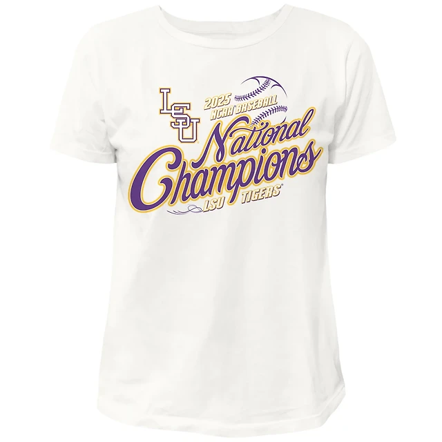 Wildcat Retro Women's LSU Tigers 2025 Men's College World Series Script National Champions Short Sleeve T-Shirt