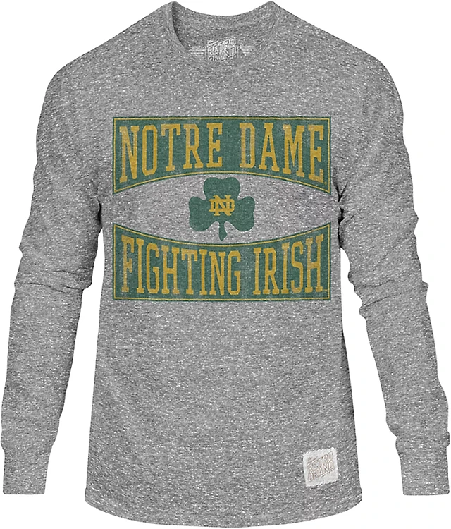 WILDCAT RETRO Men's Notre Dame Block Clover Triblend Long Sleeve T-shirt