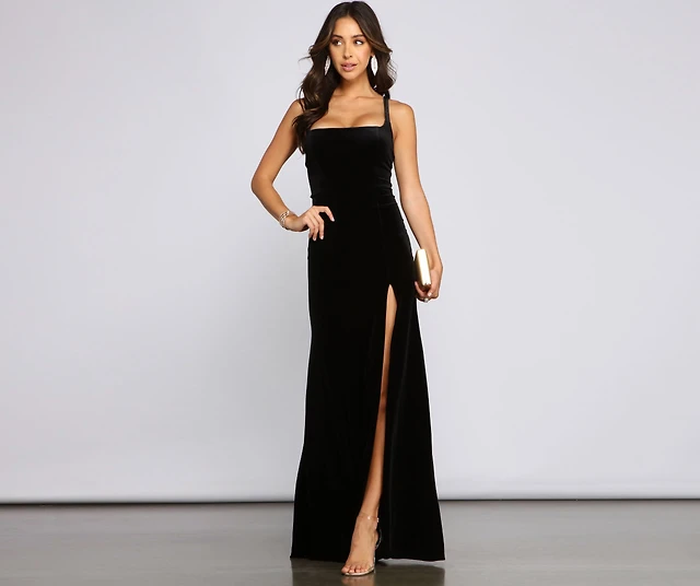 Vega Formal High Slit Velvet Dress