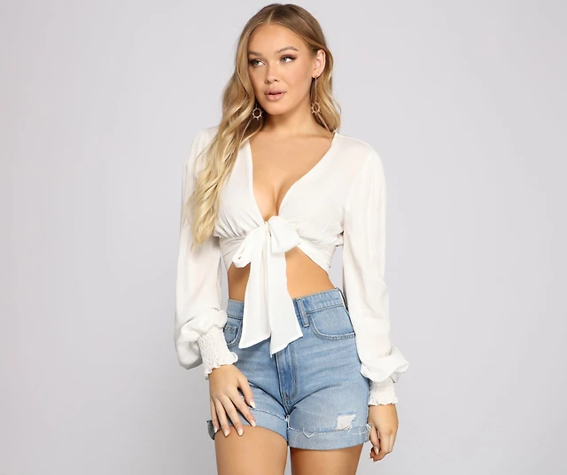 Twist Of Fab Gauze Tie Front Crop Top