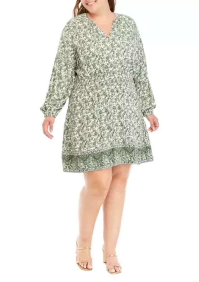 Plus Smocked Shoulder Printed Top