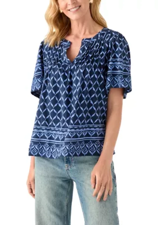 Women's Printed Pleated T-Shirt