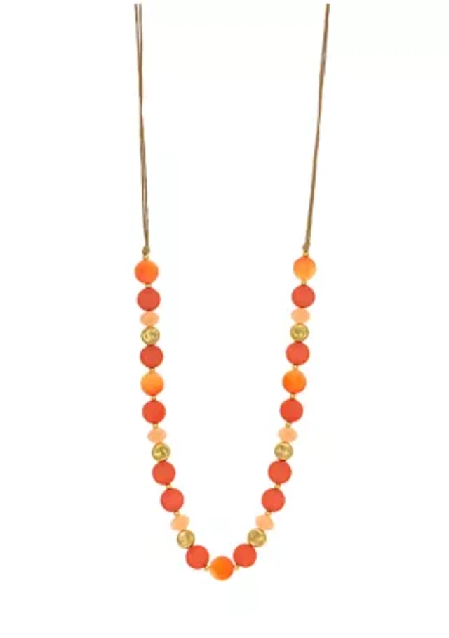 Gold Tone Two Row Long Multi Colored Beaded Stations Necklace