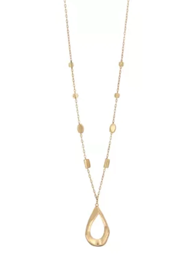 Silver Tone Long Multi Beaded Open Teardrop Pendant Necklace
