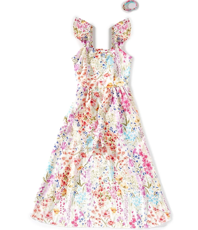 Xtraordinary Big Girls Flutter Sleeve Wrap Waist Floral Print Tiered Maxi Dress