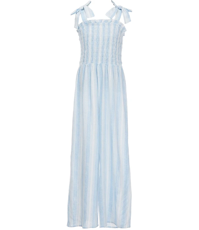 Xtraordinary Big Girls Stripe Sleeveless Smocked Top & Wide Leg Linen Palazzo Pants 2-Piece Set
