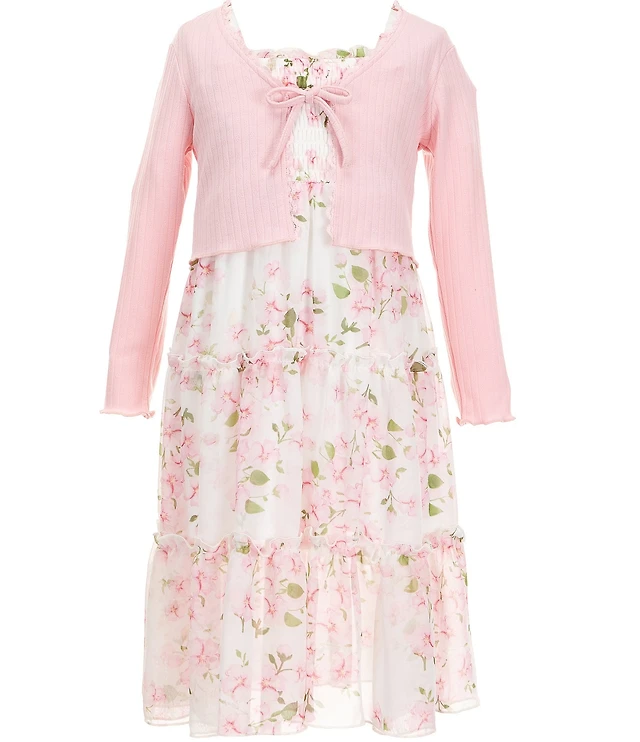 Xtraordinary Little Girls Floral Print Chiffon Dress and Tie Front Cardigan Set