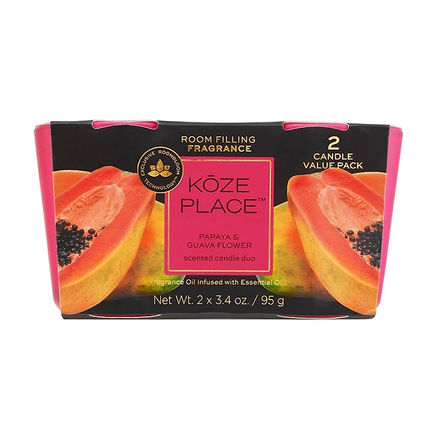 Koze Place Papaya and Guava Flower Scented Candle Duo, 3.4 oz