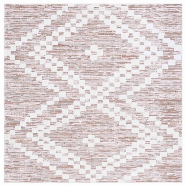 Taupe & White Bohemian Diamond Square Rug, 6x6