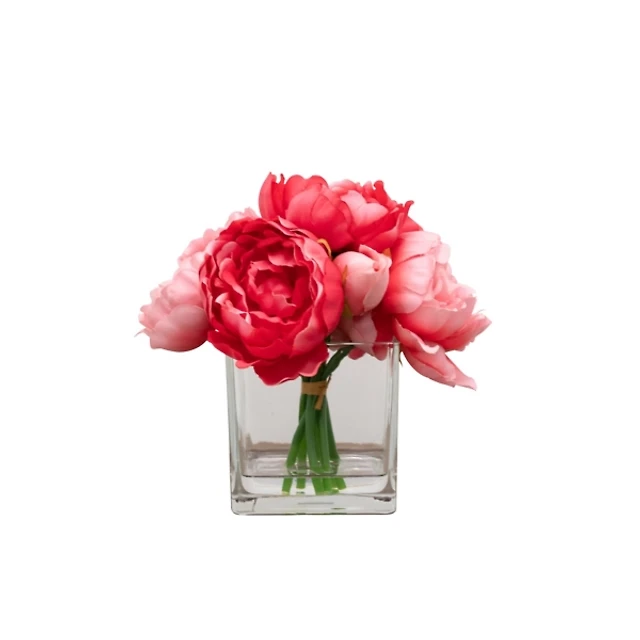 Pink Peony Arrangement in Handblown Glass Vase
