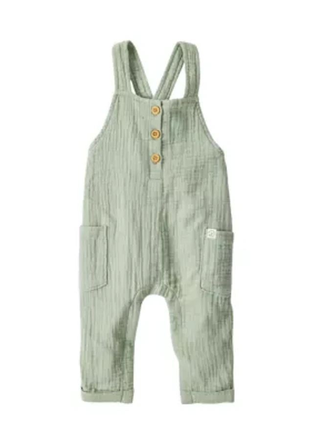 Baby Boys Lightweight Plaid-Lined Canvas Overalls