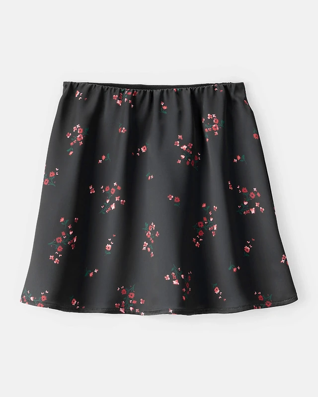 Girls Floral Print Woven Skirt - Black