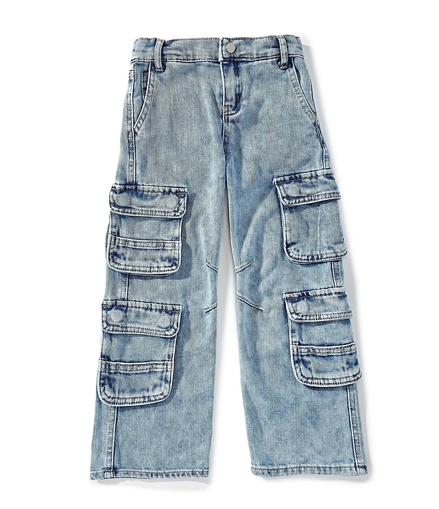 Tractr Big Girls Cargo-Pocket Wide-Leg Jeans