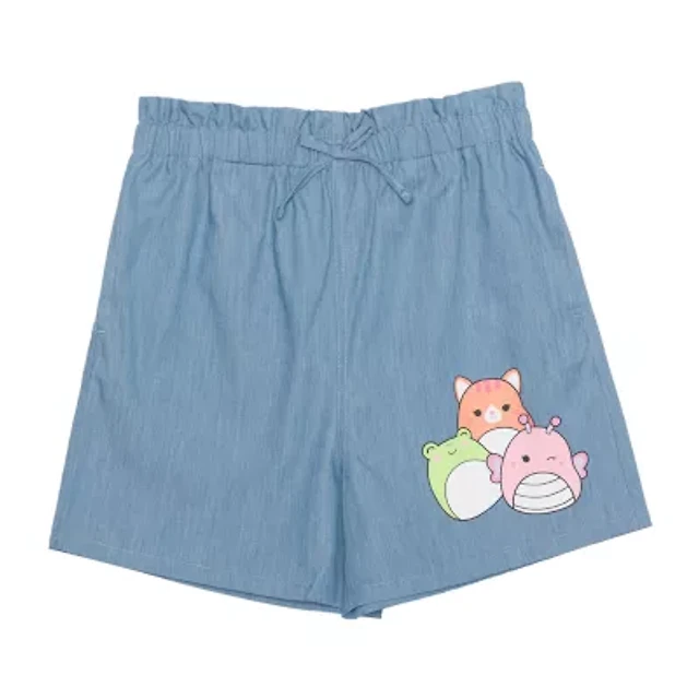 Girls' chambray scallop-hem pull-on short