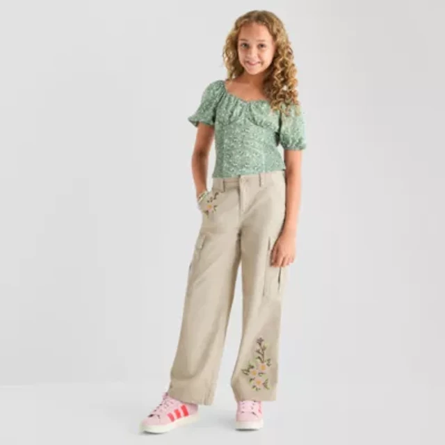 Girls' wide-leg patch-pocket jean