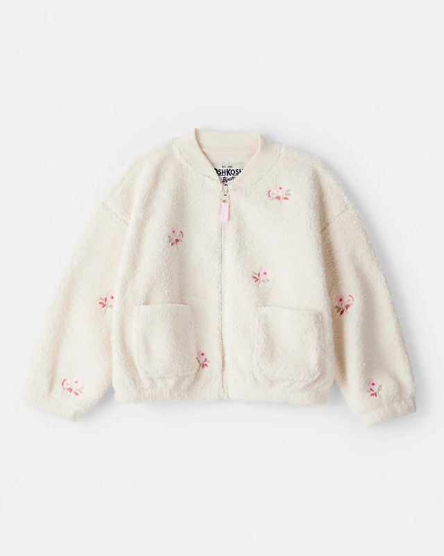 Toddler Girl Floral Sherpa Bomber Jacket - Ivory