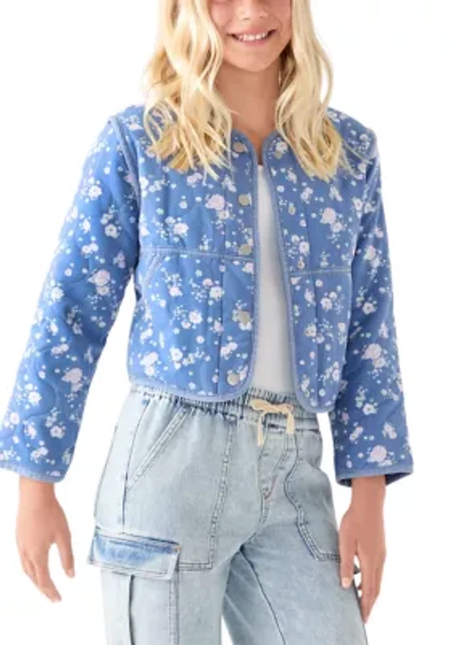 Girls 7-16 Denim Jacket with Heart Appliqué