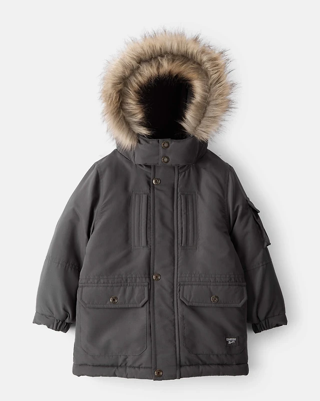 Toddler Boy Hooded Heavyweight Winter Jacket - Grey
