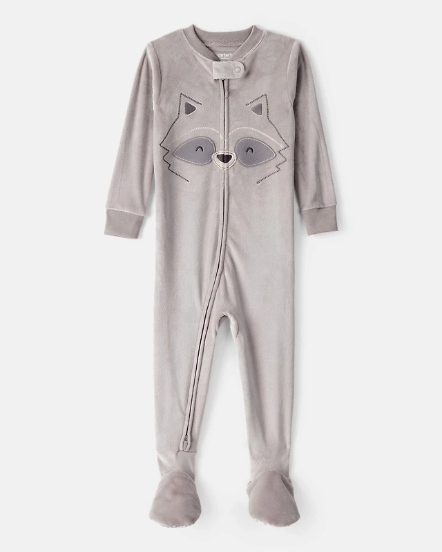 Toddler Boy Raccoon DreamPlush Long-Sleeve Snug Fit 1-Piece Pajamas - Grey
