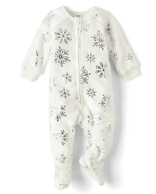 Baby And Toddler Girls Foil Snowflake Fleece Footed One Piece Pajamas