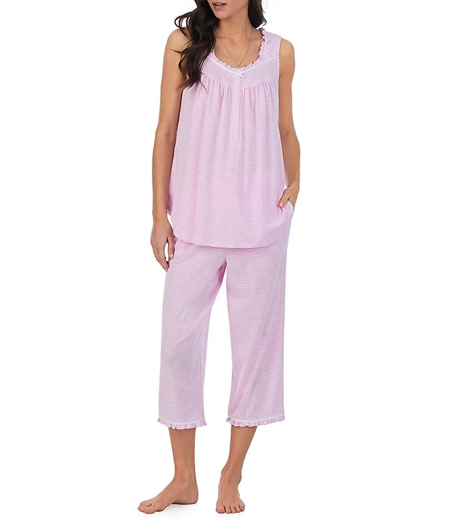 Eileen West Stripe Print Sleeveless Square Neck Knit Capri Pajama Set