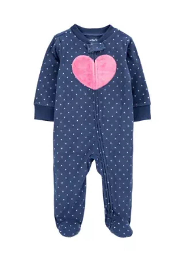 Baby Girls Santa Print Loose Fit Fleece Long-Sleeve Sleep & Play Pajamas