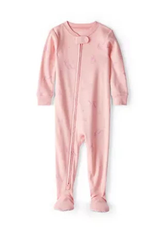 Baby Girls Microfleece Bow Printed Sister Zip Footie Pajamas