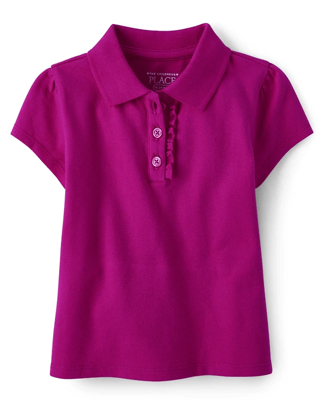 Toddler Girls Uniform Ruffle Soft Stretch Pique Polo
