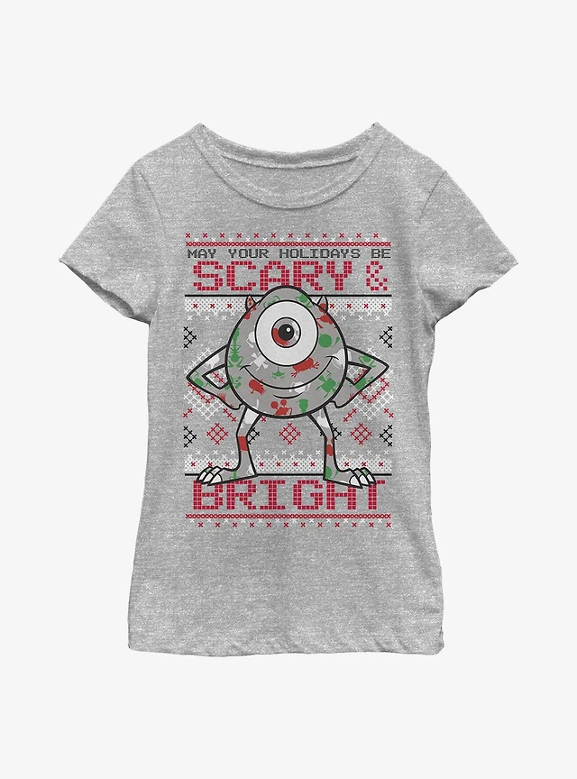 Disney Pixar Monsters, Inc. Mike Holiday Pattern Youth Girls T-Shirt
