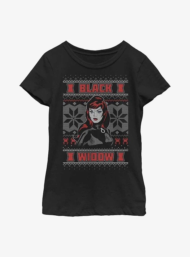 Marvel Black Widow Ugly Christmas Youth Girls T-Shirt