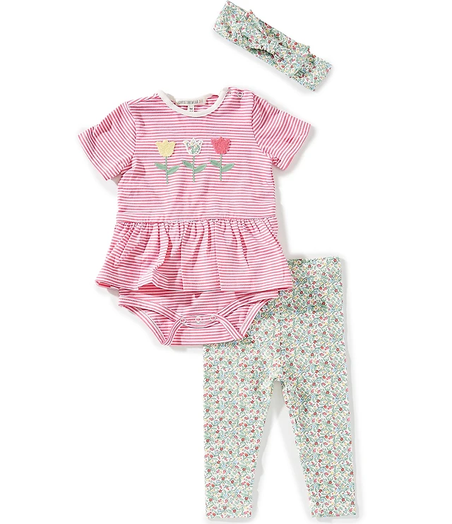 Little Me Baby Girls Adorable Bunny Bodysuit & Coordinating Printed Pants 3-Piece Set With Headband
