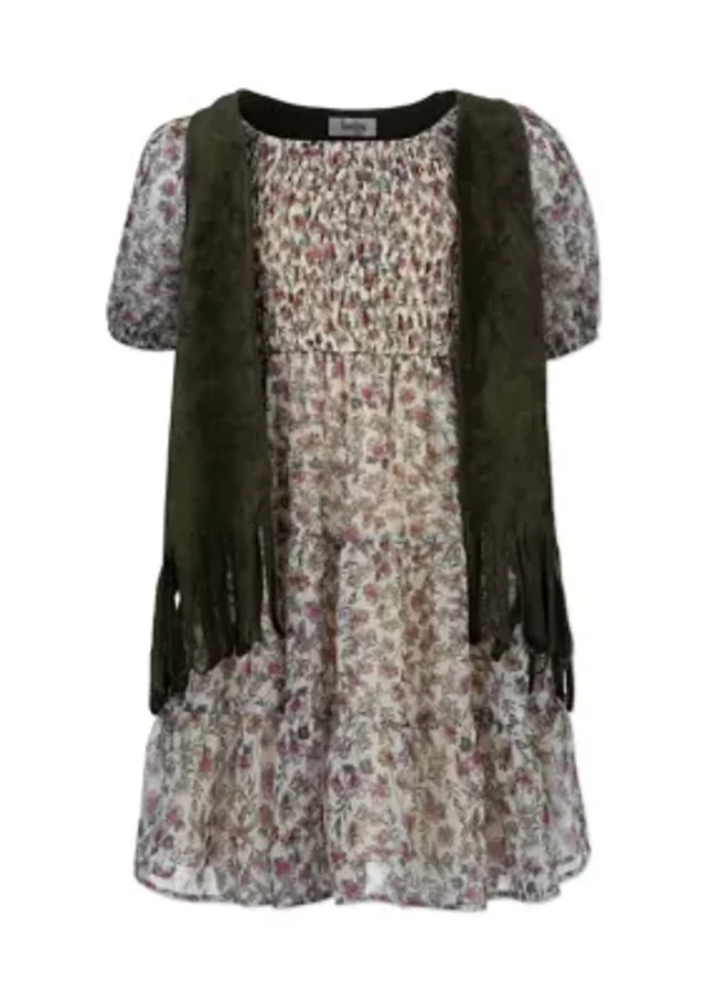 Girls 7-16 Short Ruffle Sleeve Chambray Shirt Dress