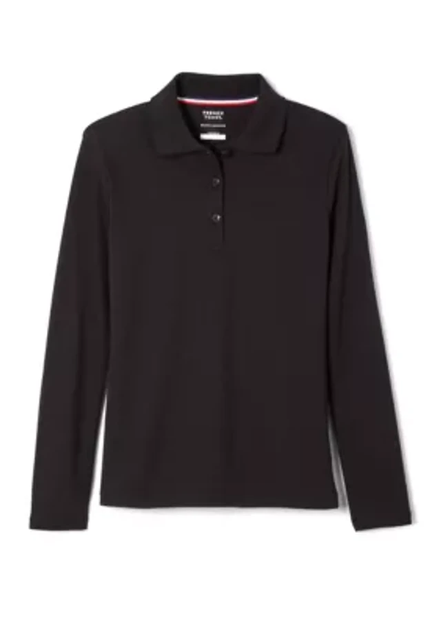 Girls Long Sleeve Picot Collar Interlock Polo Shirt