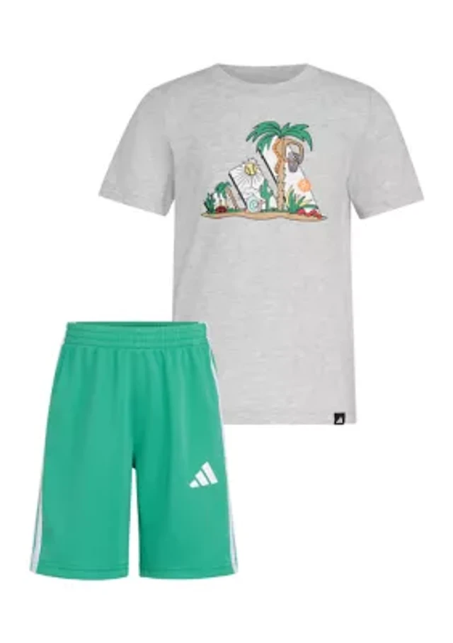 Boys 4-7 2 Piece Short Sleeve Polyester T-Shirt & Printed 3 Stripes Shorts Set