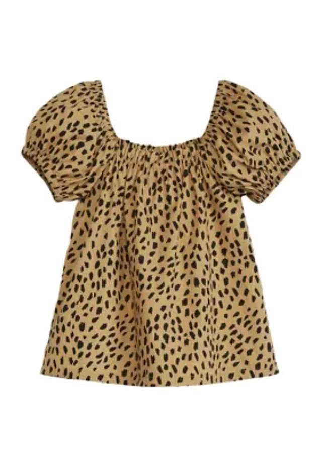 Girls 7-16 Printed Smocked Flutter Sleeve Top