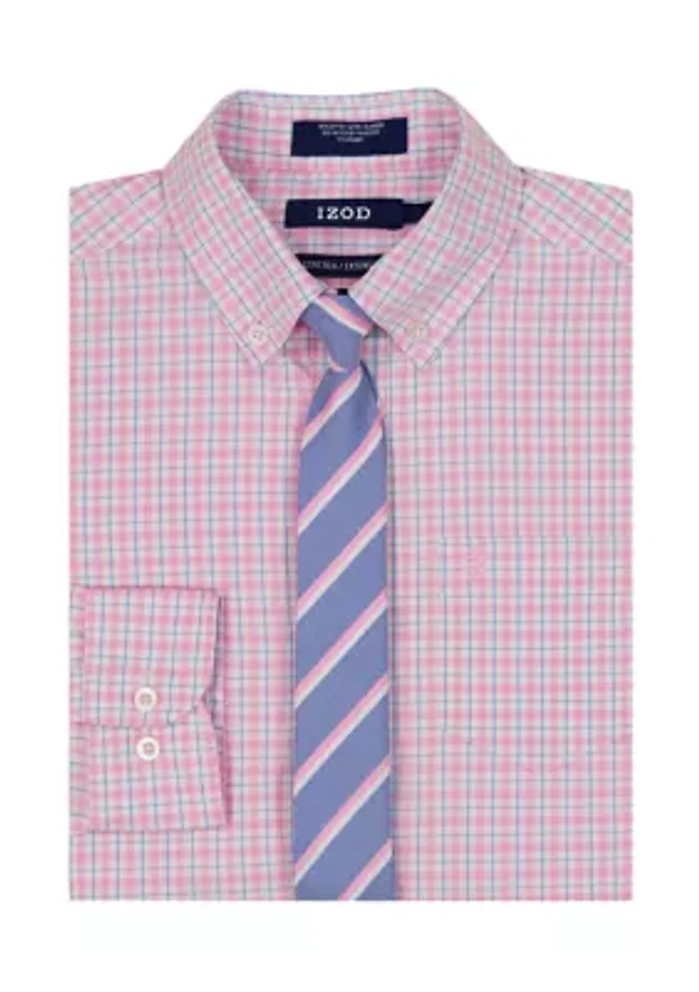 Boys 8-20 Long Sleeve Stretch Ridgewood Plaid Shirt & Tie