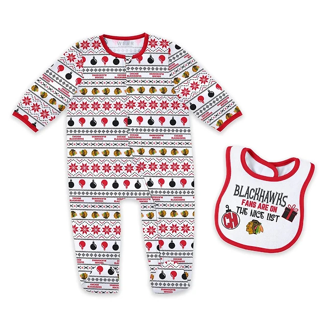Newborn WEAR by Erin Andrews Chicago Blackhawks Allover Print Full-Zip Sleeper Bib Christmas Set