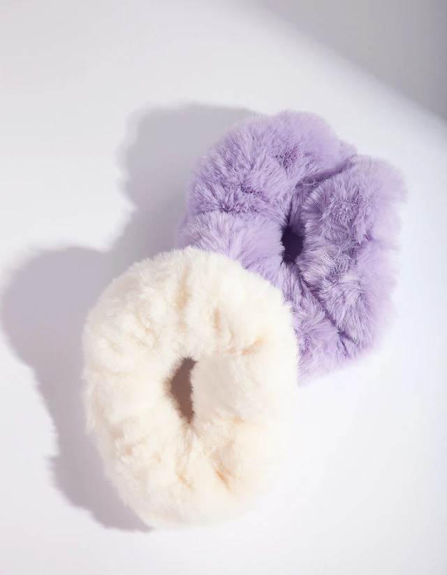 Purple White Faux Fur Scrunchie Pack