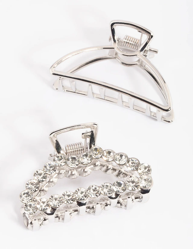Silver Mixed Shape Small Hair Claw Clip 4-Pack